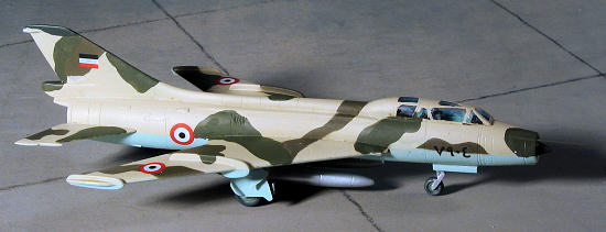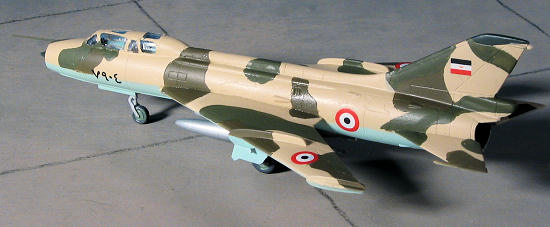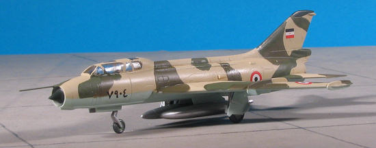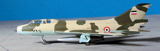 The next thing was to glue on the wheels. These needed to have the attachment holed drilled out to fit the gear stubs. The landing gear doors were then glued in place. The instructions are a touch vague on the main gear door attachment, but I think I got them about right. Most of the photos of Su-7UMs that I found show the drop tanks on the inner wing pylons. However, the gear doors are too thick and so I glued them to the centerline pylons. The wing pylons were left empty. I then cut a section of .0125 brass rod for the pitot and glued that in place. The model then got a coat of matte clear (Future with Gunze matte agent), and the masking taken off.