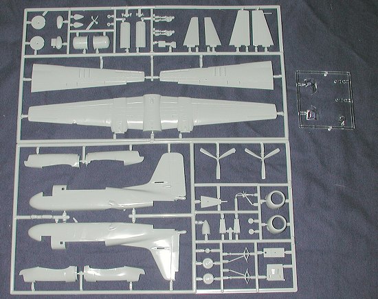What we would call a second generation Hasegawa kit (before engraved panel lines, but after rivets and thick plastic), this one has the required raised panel lines and engraved control surfaces. Though this is a rather early boxing, the kit suffers a small bit from flash and sink areas. Nothing major, but parts will need to be inspected for these things prior to use. For those of you unaware of the tie-in between Minicraft and Hasegawa, Minicraft imported Hasegawa kits for many years. At first, the only difference between a Hasegawa and Minicraft kit were that Minicraft kits were shrink wrapped. Then Minicraft started adding their own kit numbers and preparing instructions in English. Later, they provided all new decals and different boxes in addition to the things previously mentioned. In respect to decals, plastic and box art, this is exactly the same as what one would have bought in Japan.