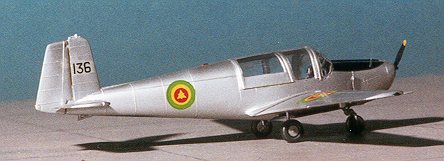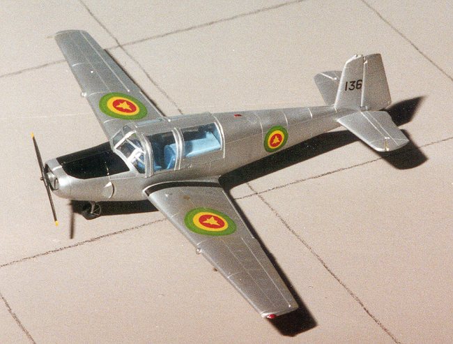 The Saab 91 Safir is a four seat cabin monoplane. It was firstflown in November 1945. A total of 320 Safirs were sold to customers in 20countries. Some were used as executive transports and others were sold to various military forces. Yet others were used for training airline pilots. The Saab 91B was powered by a Lycoming 190 hp, which was sufficient to give the aircraft good performance. A number of military Safirs were reduced to three-seaters by the addition of some avionics equipment that took up what was the fourth seat in the back of the aircraft. By all reports, the Safir was an easy to fly aircraft with no vices. To make it even safer in the event of an emergency landing, the nose wheel does not retract all the way and can help cushion awheels-up landing.