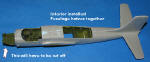 The main instrument panel is a decal and it fit well, succumbing to Solvaset without any problem. I painted the seats OD and glued them in along with the control column. I then glued in the nose gear parts to the lower cockpit floor. Then the various bulkheads were added. Don't bother painting the bombardier's section as it will disappear behind the gun nose. With that done, I started gluing bulkheads and bomb racks in place, eventually trapping all this between the fuselage halves. You do need to glue these all at