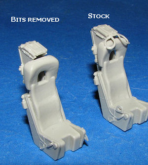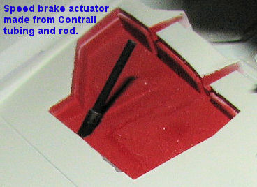 Anyway, with the seats done, I cleaned up the cockpit area of any left over white glue when the single piece canopy was removed and then the seats were glued in place. I pushed on the horizontal stabs now they'd been done, and they are a tight fit. The sprues were missing the speed brake actuators so I made some out of Contrail tubing and rod.