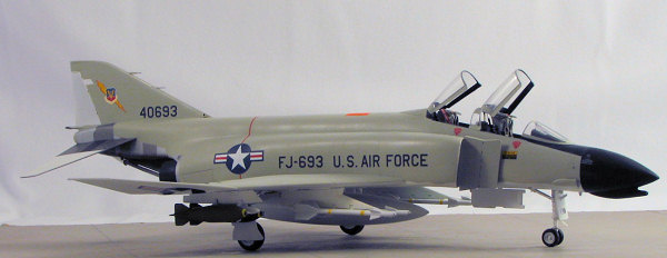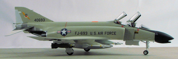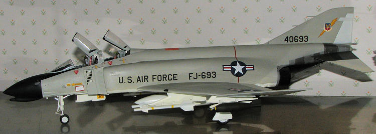 The F-4C version is basically a Navy F-4B that has Air Force avionics systems in it. Externally, it can be identified by wider main wheels, which required the upper wing and main gear doors to be bulged to house them. It also has a stabilator that does away with the 'slatted' leading edge as the Air Force has nice long runways and didn't need the additional low speed control. The bridle attachment points under the leading edge of the wing are also gone. Inner wing pylons are also a different shape, being more rounded. The D model was similar but had upgraded avionics over the C that included a better bombing/nav computer, better radar, and the ability to carry more and different weapons. It can be distinguished from the C model by a square 'box' under the IR seeker on the lower radome. Both of these versions were handed over to the ANG and reserves after regular USAF units transitioned to the F-4E. For a decade or more, most of the air defense units flew the F-4C/D Phantom II, until replaced by the F-16 ADF in the early 1990s when they were then phased out of service. The only other country to fly the F-4C was Spain and those were phased out about the same time as USAF units in the late 1980s.