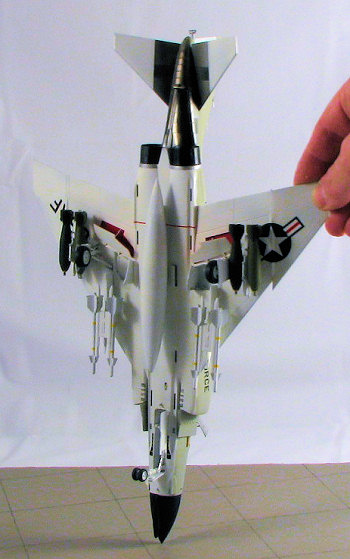 I generally don't grunge up my aircraft so rather than make excuses like "this was the squadron commander's plane and kept is pristine condition" or "this unit was well known for the cleanliness of its planes" or "this aircraft is modeled after it came out of repaint", I'll just say that I don't usually do weathered planes and leave it at that. I did add some jet exhaust to the rear underside, and that was about it.