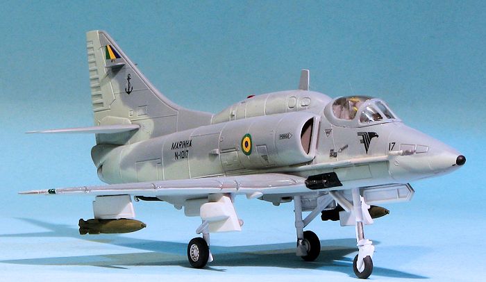Once withdrawn from USMC service, the type served in the adversary role for many years. 36 refurbished aircraft were later sold to the Argentine Air Force. These airframes were upgraded with F-16 avionics systems. These aircraft are designated A-4AR and entered service starting in 1998. Brazil also operates the type, purchased from Kuwait and upgraded similar to the Argentine planes. Brazil designates these planes as the AF-1 and operates them from the Sao Paulo, the ex-French carrier Foch.