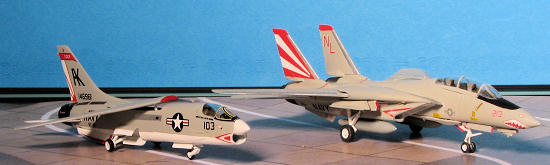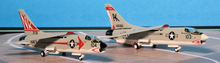 Anyway, the F-8A has no ventral strakes so those attachment holes had to be filled. The F-8A has no afterburner cooling scoops so those were sanded off. The F-8A had no upper fin antenna so that was also sanded off. I also removed the small pylon attachment points from the forward fuselage of both planes. On the F-8C, the ventral strakes and cooling scoops were glued in place. The attachment points for both these items is very small so one needs to be quite careful not to smear glue all over the place when doing this. | COLORS & MARKINGS |