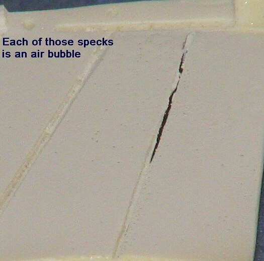 After several weeks of attempts to fix the problems, I gave up on it as it was just too bad. I then decided to contact the importer to get a new wing. Well, in the time between starting work and deciding on asking for a new wing, the importer changed. I asked the new importer for a wing, sending along this previous image and ones from the preview showing all the air bubbles. He then contacted Anigrand and a new wing was on the way.