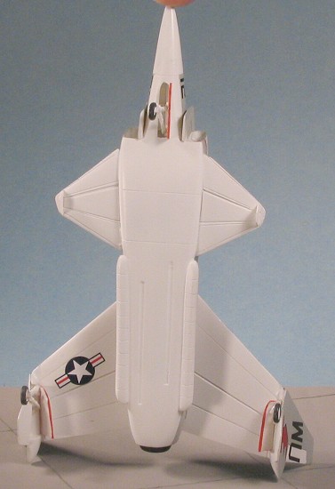 Once the seams had been sanded smooth I took the kit to the paint shop and painted the underside as well as the gear doors and the upper control surfaces with Floquil Reefer White. I'd decided to do a nice 'what if' scheme using the Light Gull Grey and White scheme so prevalent when this aircraft was being developed. It was also the scheme given in the instructions though I'm going to use other decals on this one. When the white was dry, I returned to the work bench for some more gluing and detail painting.