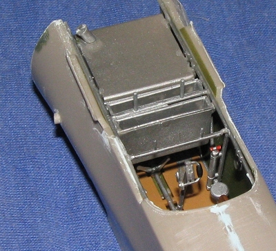 for the aft cross piece, and the two ammo containers. These glue to either side of the forward crosspiece as well. Last bit is the fuel tank.