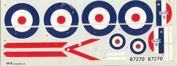 The instructions are what I call Euro-instructions. That means no written information and only drawings. The 14 construction steps are more than adequate and they also show specifics on rigging the plane as one goes along. Decals are for one aircraft as shown on the box art. This, I assume, is supposed to be Roy Brown's, the man who is often given credit for shooting down 'the Red Baron', Manfred von Richthofen. Decals are glossy and should work well, though mine have been through the mill a bit.