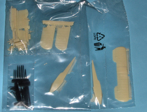 As one would expect from a submarine borne aircraft, this is not a large kit. The parts are in the usual compartmentalized poly bag and are actually double-bagge