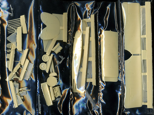 As you can see, the kit is packaged in one of those multi-compartmentalized clear bags. This allows the lighter, more fragile stuff to be away from the heavier pieces and prevents unwanted breakage. For that reason, I've left the bits in the bags.