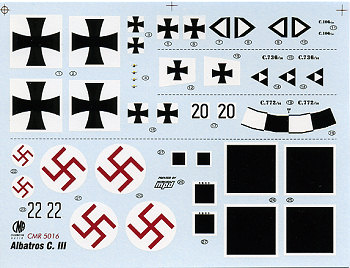 There are several sheets included in the instructions of which one has the four actual construction steps that are very well drawn. One thing I noticed is that the expansion tank in between the wings is not noted in the instructions, but from what I have been told, not all aircraft had this feature. It is a simple matter to install if applicable. There is a full set of 1/72 scale five view drawings to assist with rigging. Markings are provided for five aircraft. All three German options have a wooden fuselage and linen colored flying surfaces. The Latvian aircraft has a green fuselage while the Turkish aircraft is either in grey or brown. Decals are superbly done and include all the required stripes and bands.