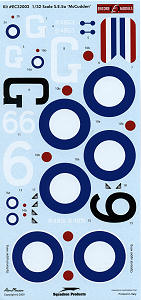 adron prior to 23 September 1916. This has the large letter G and the 'dumbbell' marking used by the unit and is shown on the box art. This same aircraft can be marked as it was after that date when the rear fuselage marking was replaced by a white band. This particular aircraft had the enlarged cockpit area and the single strut landing gear. The third marking option is his second aircraft. This has the strengthened double tube undercarriage, a standard cockpit and a large red spinner taken from an LVG that McCudden shot down in late 1917. This aircraft replaced the G with a number 6. Decals are by Cartograf so are superbly done and will be quite opaque.