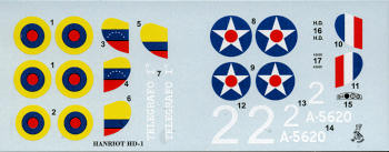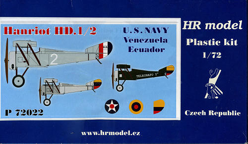 US Navy planes from 1923 in an overall light blue grey with aluminum engine cowling. They differ in numbers and the fact that one is armed. An Ecuadoran HD.1 in overall dark green with just a name (Telegrafo I) and rudder stripes is the third option. It also has an aluminum cowling and is unarmed. The Venezuelan version is overall aluminum dope with the forward section in what looks to be unpainted aluinum. This has roundels in six wing positions. It also has a band of stars in its rudder stripes to differentiate it from the Ecuadoran plane. This one is shown armed. The decals are very nicely doneA strange omission for a WWI era aircraft, is that there is no rigging diagram. You can tell what goes between the outer struts and on the tailplane, but what goes between the gear or between the outer struts and fuselage will require some sleuthing on the internet.