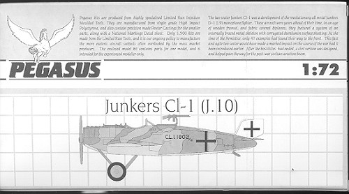 | KIT: | Pegasus 1/72 Junkers CL.I (J-10) |