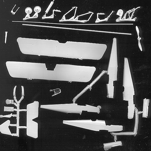 This kit is a bit different from the norm in that you have two fuselage options. The Se.5 was initially offered with a large forward windscreen (which is provided in injected plastic), so that fuselage is included. Strut material is also provided for you to make the various wing struts. The instructions provide a cutting guide for this purpose. The gear parts are all pewter so you don't need to make those items.