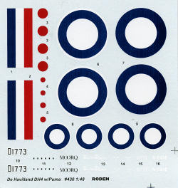 Instructions are quite well done with Model Master and generic paint references. All planes have WWI green upper wing and tail plane surfaces but here is where the similarities in markings ends. The box art plane has a gaudy sunburst scheme on the fuselage sides and top in red and yellow . The undersides of the wings and tail planes are linen with grey-green squiggles. This aircraft was assigned to 62 Squadron RNAS based on the Turkish island of Imbros in the Spring of 1918. In an equally gaudy scheme (which is apparently the same plane at a different time) has the sunburst in WWI green and white with the fin in white. For these two schemes, Roden has provided what appear to be full size (as in 1/48) patterns. If doing these schemes, I'd copy the patterns, then cut out the required 'bursts' on tape. The final option is a 224 Squadron plane in standard colors at Mudros on the Greek island of Lemnos in the spring of 1918. The decals are very nicely done and provide all the general markings and serials needed.