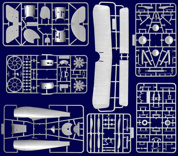 As with all newer Roden kits, the molding is superb. Like many Roden kits, you also get bits that are not used with this variant. You get fill cockpit detailing, including a seat whose backing piece you bend around the seat bottom. Sidewall detail is included as well for this as well as all the proper controls and levers. You get a multi-piece rotary engine with separate cylinder heads. In fact, you get variations of the engine hub on which the prop is attached. The two piece cowling is also well detailed. You are provided with three propellers, but no indication as to which is used with which markings option so the choice is yours.