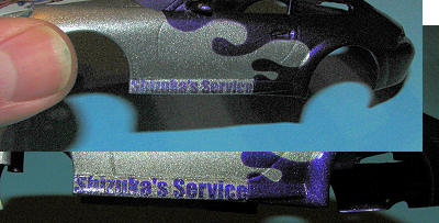 Now I know that it would have been great if the background matched, but I've come to find out that unless you are trying to duplicate a solid color, you'll fail as metal-flake and pearls are actually somewhat multi-hued. Regardless, the procedure is the same for all home made decals.