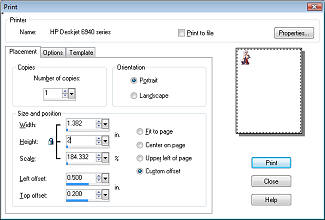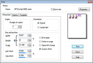 about 2 inches in height. Opening up the print window, I was able to custom size