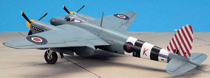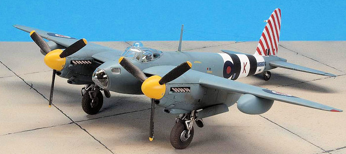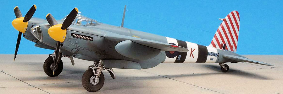 There were several reconnaissance versions of the Mosquito, right from the start. The subject of this kit is the PR XVI. It was based on the latest bomber version, the B XVI. It was unarmed and carried a high-powered multiple camera installation and augmented fuel storage. Its canopy was modified with top and side blisters to improve visibility. With underwing auxiliary fuel tanks, missions of up to 2,000 miles were possible. Some PR XVIs were provided to the USAAF, using it also for weather and photographic reconnaissance. Some aircraft were modified to carry the H2S /H2X ground observation radar, used to identify bombing targets where no visual identification was possible.