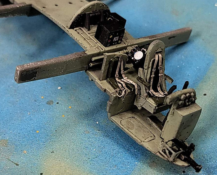 That done, I tackled the Eduard Zoom set. My tried and proven approach is to sort out the workable from the positively ludicrous parts, and only use what I find I can tackle. For instance, I rather glued some of the instrument panel thingies onto styrene backings instead of folding the backings from PE. And don´t get me started on small levers and other extremely small and impossible for me to handle items. I then gave the interiors a wash and a flat coat prior to closing up the fuselage.