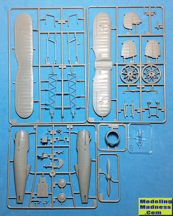 Upon opening the box, I was greeted with 41 light gray styrene parts, arranged in three main sprues (which are common to both the MkI and MkII versions) and two petite sprues which contain the correct cowling and prop for the specific version. Typically for HobbyBoss, all sprues are individually packaged and the sensitive parts are additionally protected by foaming. Bravo HobbyBoss/I Love Kit!