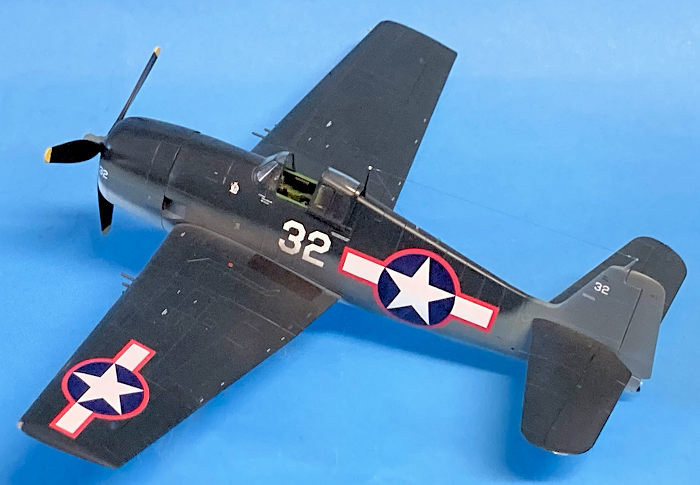 The model was built just as BuNo 66016 would have appeared when delivered by the USS Lexington to Hawaii in August 1943. After intense training VF-16 saw action in the Tarawa Atoll and the Gilbert Islands. By mid-September the red surrounds were painted blue. BuNo 66016 was flown by Alex Vraciu when he joined VF-16 in June 1944.