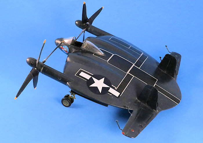 The XF5U-1 was a WWII Naval fighter designed by Charles H. Zimmerman, an aeronautical aerodynamics engineer working for the Chance Vought company. Zimmerman’s near circular wing-body design with large roto-type propellers at the wing tips, something he had been working on during the 1930’s, offered excellent low-speed handing yet high-speed maneuvering. This would have been a near VTOL aircraft with projected top speed in excess of 450 mph. This very much interested the Navy and a development contract was issued to Vought.