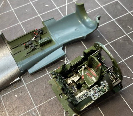 Like their other Zero kits, Eduard provides a jig for assembling the 5 piece cowl that is absolutely brilliant and makes the front assembly a snap! I followed Eduard’s instructions exactly but I did leave off some of the tiny PE and sprue parts that are hidden and one will never see. The assembled cockpit is absolutely gorgeous but once again, most of it is almost invisible once installed.