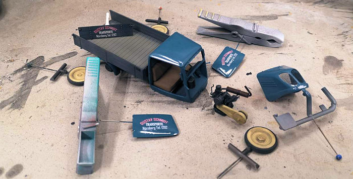 I chose the blue vehicle, as it was based in Nuremberg, the capital of Franconia, where my godmother spent the best part of her life. Construction actually did start with a good hard think, as I felt I would not be able to proceed with the driver´s compartment as planned.