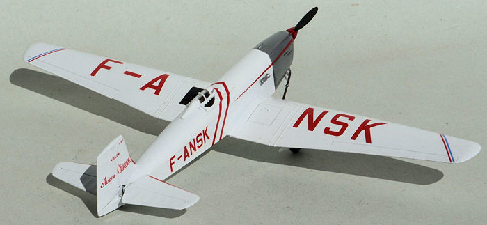 I left off the engine cowling and prop for separate painting. The final construction step was to add the u/c legs, wheels, what I think might be a fuel tank fairing and the tail-wheel, (which I promptly broke off and lost). The last tiny parts were a venturi and a pitot tube.