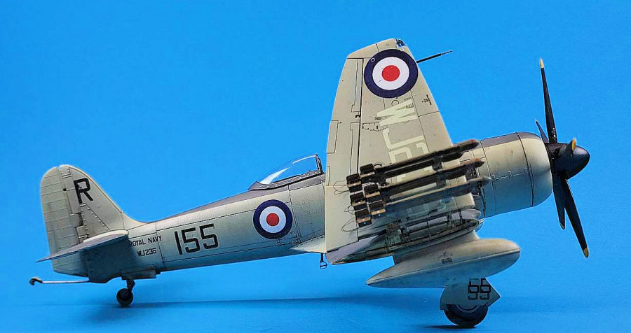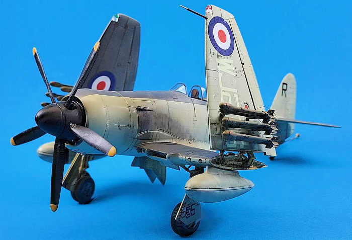 The Sea Fury only served with the FAA for a short period until 1953, and was the last propellor-driven fighter in its service. Yet it held its own even during the Korean war, with one Sea Fury even shooting down a MiG-15 jet fighter. The type was also a success in exports, and on the whole, around 860 aircraft were built, amongst them a good number of two-seated trainers. Sea Furys were used as target tugs and racers due to their high speed, and even today quite some of them are in airworthy condition.