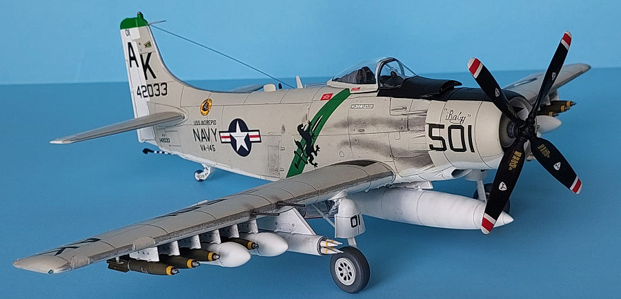 I am very happy with the results of my build. The Tamiya kit is well engineered and went together without any issues. I would recommend Tamiya’s Skyraider to anyone who has a few kits under their belt. Aside from adding seatbelts, the kit is fine out of the box but particularly regarding the ordnance, it just screams to be super detailed.