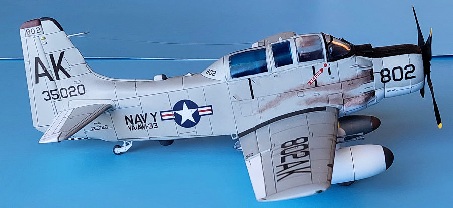 The reason I chose to do this particular aircraft was an article online describing the Skyraider’s role as a nuclear bomber. The aircraft in question was part of the all-weather VA(AW)-33 “Nighthawks” Detachment 42 stationed aboard the U.S.S. Forrestal during the ship’s Mediterranean Cruise in 1958.