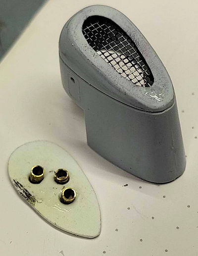 I then cleaned up and somewhat refined the many small parts, drilled out cowl vents, searchlights, sirens and the like. The water cannon was detailed as per my reference images.