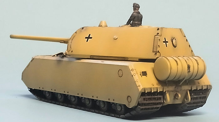The already rather heavy Panther and Tiger tanks were close to reaching service, but Hitler was characteristically directly involved and looking past these to a ‘last-word’ solution. Krupp and Porsche were given design contracts. Upper weight limit was set at 100 tons. Some of the planners wanted a second turret for a smaller gun, but by 1942 multi-turreted tanks had proven impractical in combat, so other than the size, the design's most prominent weirdness went in at this point in the form of a 75mm gun coaxial to the big one.