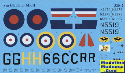 Instructions are a nicely done booklet with detail sections to help with some of the building. Four markings options are provided all of them in the same basic scheme. I'd ignore the kit color information on this and go with the usual FAA shades as ICM only lists ICM paints that are close. On all options, the underside left wing and forward fuselage is black. The decal sheet is superbly printed and in register.