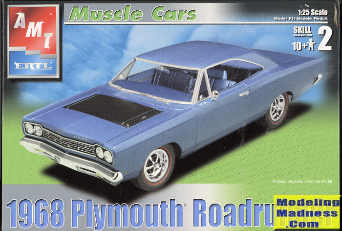 Molding is pretty good and free from flash. AMT chose to model the Hemi powered car, which is good for marketing, though most '68 Road Runners had the standard 383. A full engine is provided with a choice of two in-line four barrel carburettors (which was standard for the Hemi) or a cross induction intake, which was at times used in drag racing.