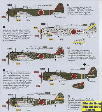 The first of five options is a late production Ki-43-II from the 248th Sentai based at Alexishafen in New Guinea during 1943 in the green upper with unpainted metal lower surfaces.