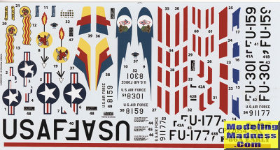Instructions are very well done with Gunze and MiG paint references. Three options are provided, all in overall unpainted aluminum with some light gull grey panels. All are the same as what was offered in the 1/48 kit. One is the box art plane with red wing stripes and rudder from the 334 FS in 1950. Another is with the 62nd FIS with a multi-color fin marking while the third is with the 94th FS with the blue comet on the fuselage. Decals are well done and should provide no issues. Additional red stripes are provided in case they are needed.