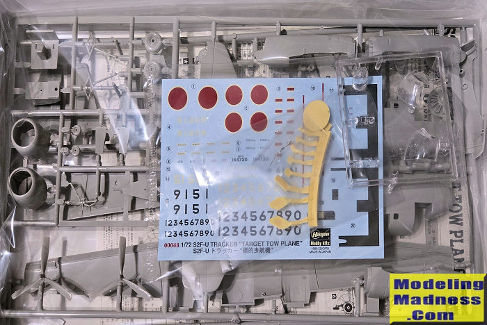 When one assembles the engine nacelles, one has to install the main gear legs. Wings are a single upper section with two underside halves. All of the gear doors are butt joined and must be cut before attaching them for gear down. The cockpit transparency is in two halves so careful joining is needed when attaching them. Since this is a target tug, many of the parts are replaced by resin plugs such as the upper and lower radomes and the side cooling scoops. Some trimming of kit parts is also needed.