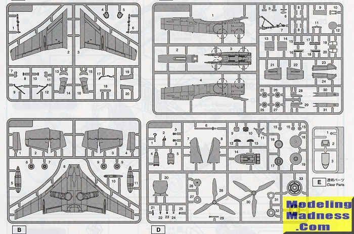 Instruction booklet is nicely done with color information in Gunze, Tamiya, and generic. Everything in the instructions is written in Japanese, but it looks to be very easy to build the kit, though some of the notes will be unreadable to many outside Japan. There is a nice decal sheet that includes all the yellow bits other than the spinner. One option is provided and that is for the main character in the movie. I thought that the airplane was overall unpainted metal with green mottling, but that is apparently not the case. The underside is flat white as is the lower part of the fin. the upper surface is RLM 76 with black upper fuselage and part of the upper sides in RLM 74 Mottling in RLM 74/75. Since the underside and landing gear is white, I'd attach the gear minus wheels and doors before painting.