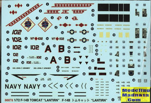 The instructions are very well done as you would expect. They offer color callouts based on Gunze paint as is the norm with Hasegawa over the last decades. You get the standard F-14B instructions with a separate addendum sheet for the Lantirn pod and for the decal markings. This kit only has the box art markings option for a VF-102 plane in the tactical paint scheme. The decals are nicely printed and even after 25 years, should still be viable.