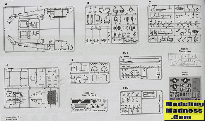 I am sure that Vietnam War diorama enthusiasts will find this a very welcome kit. One thing that I noticed is that this kit seems to have the broad fin of the C model rather than the thinner version of the B variant. Now it is quite possible that there was a change as construction went on and that earlier airframes were retrofit, but I'm not well versed in Hueys so someone can fill me in on that.