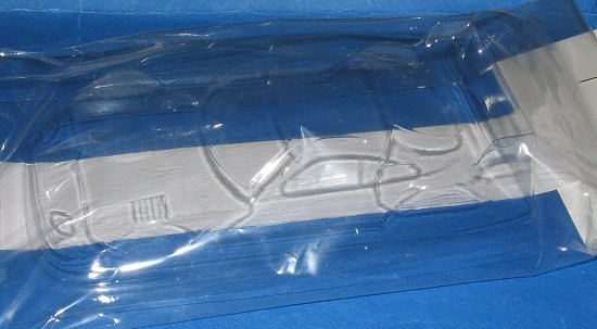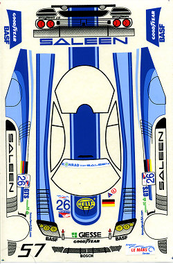 Well, since then, I have asked questions and learned the right way to do things. This time, I went modern and used an JK Productions Saleen body and decals. Well, decals is a bit of a stretch as it seems that on cars nowadays, they use sticker. Yup, just like on kiddie toys, the 'decals' are a solid clear sheet on which are printed the various markings and logos. You can see what you get off to the right. It is superbly printed, but unlike decals, these stickers will not easily conform to any but the most gentle curves, and I found that compound curves will give one fits when using them.