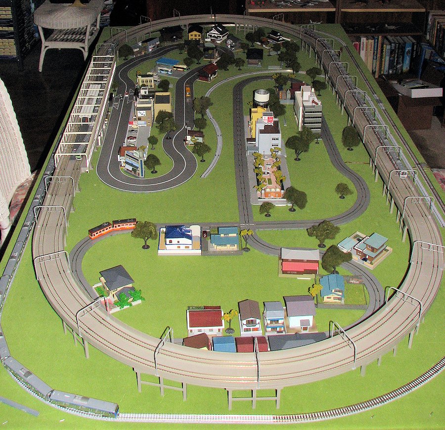 Move the hands of time forward to late last year. I was surfing the internet and saw something called the 'Moving Bus System' by Tomix. No one seems to have heard of it so I bought one from a place in Japan to see what it was like. I was hooked again. This led to another set and several additional sections of road. To go along with it, I invested in a small oval for a tram and a tram to run on it. All of this fit on a 2x4 foot section of plywood. It also encouraged me to buy some buildings for it, and slowly things grew.