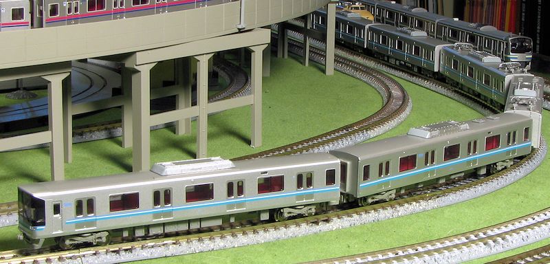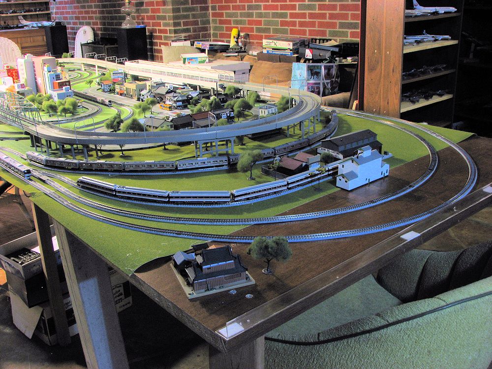 This meant moving the road section farther towards one end and moving the station to keep everything properly aligned. Moving the station is quite an undertaking because it does not connect to the elevated track as nicely as the rest of the pieces. This took considerable fussing and testing to get everything to where it would work properly. The biggest benefit of all this is the lack of crowding in the arcing turns at what is the south end of the track and the southern parts of the smaller sections that run on the inside.