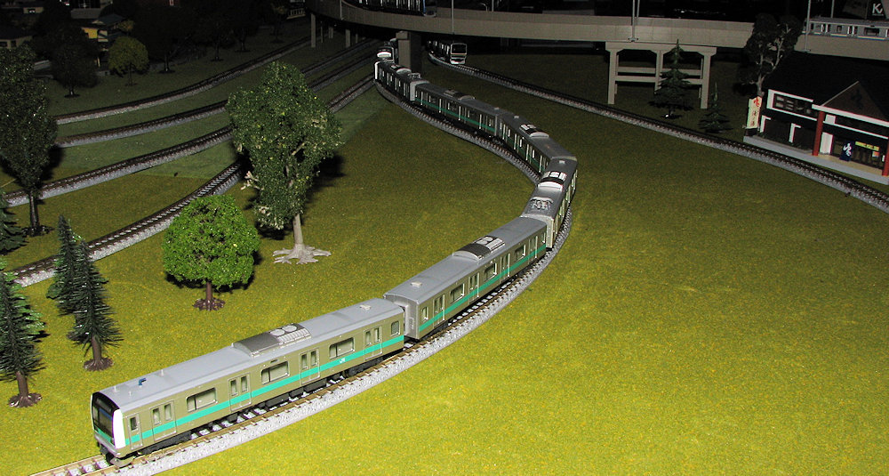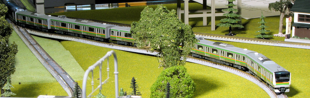 Anyway, in case you had not noticed, I've been building a collection of Series E233 EMUs. Here is a link to the Wiki article on the E233 Series. Fortunately, these are all relatively recent trains that are still running strong so between Tomix and Kato, they have all been modeled. Adding to things is the E233-1000 from the Keihin-Tohoku Line shown above. Like most of these trains produced by Kato, it is a ten car set and sold in three different packages. I'm not sure why these are marketed this way, but there it is. This set also offers an additional five car 'pusher' train which is on my future list. This is also powered and frequently used during peak hours.