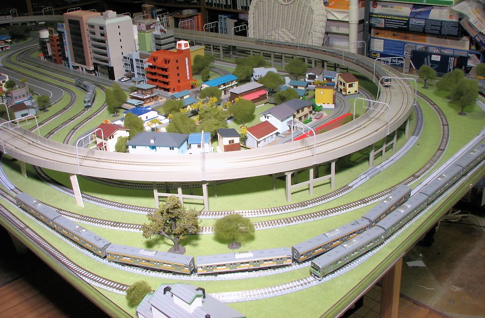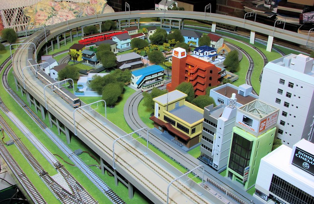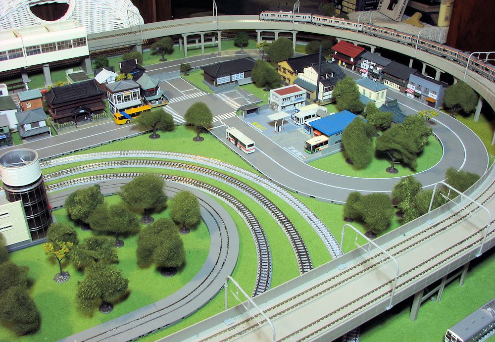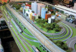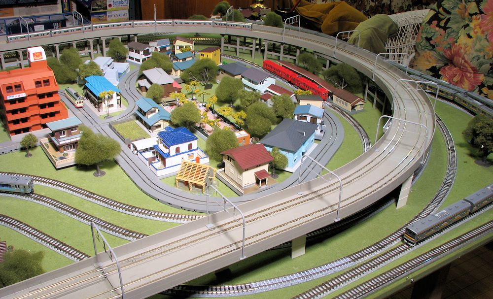 This provides for seven trains to be running at the same time, along with the trolley and two busses. There are sidings to hold an additional two trains. The inner one runs around the outside of the trolley line while there are two more inner lines that go outside the raised section for about half of their running length. Then there are the two full outer loops and the raised section. A full look at the layout is at the bottom of the article.